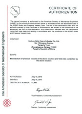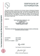Hailu manufacturing and international standards, with qualified Habitat counterparts in the first column. The company currently holds A-class boiler, A1, A2, A3 grade pressure vessel manufacturing, design license, the United States ASME "S, U" Stamp Certificate of Authorization and China CCS, the British LR, Germany GL, Norway DNV, France BV at home and abroad Classification Society factory authorized certificate.